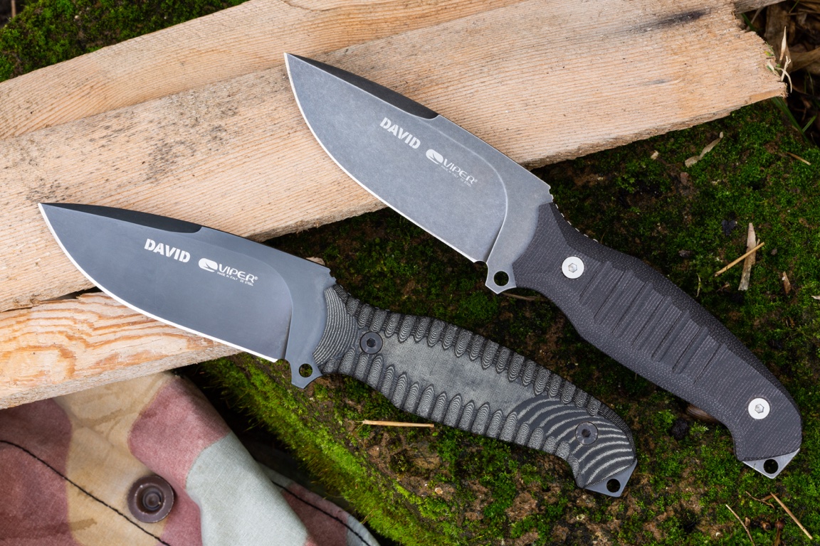I Viper David e Golia furono i primi coltelli tattici a fregiarsi del brand dell’azienda maniaghese: il debutto nel settore militare avvenne prima, con il Fearless, che però era marcato Tecnocut. A distanza di molti anni, entrambi sono ben lungi dall’andare in pensione e, anzi, sono stati recentemente riproposti in versione migliorata, non a caso denominata Evoluzione.